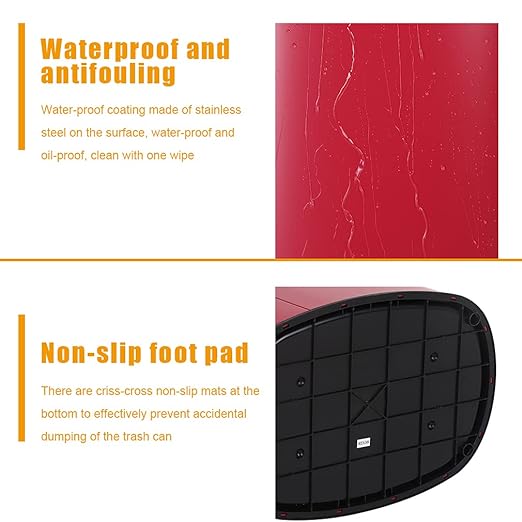 - MODERN & DURABLE DESIGN – Made of premium stainless steel with a fingerprint-resistant finish. The sleek oval body and sloping lid design fit seamlessly into kitchens, bathrooms, bedrooms, and offices.