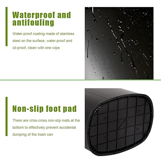 - MODERN & DURABLE DESIGN – Made of premium stainless steel with a fingerprint-resistant finish. The sleek oval body and sloping lid design fit seamlessly into kitchens, bathrooms, bedrooms, and offices.