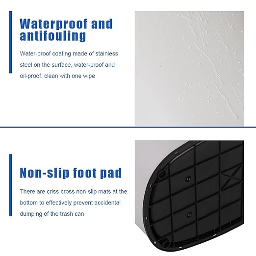 - MODERN & DURABLE DESIGN – Made of premium stainless steel with a fingerprint-resistant finish. The sleek oval body and sloping lid design fit seamlessly into kitchens, bathrooms, bedrooms, and offices.