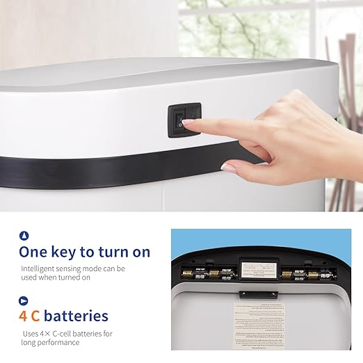 - POWERED BY 4 C BATTERIES (NOT INCLUDED) – Uses 4× C-cell batteries for long performance: Supports 40,000+ openings for long-lasting use. Alkaline batteries are recommended for best performance. For best results, install with correct polarity, switch ON before use, and place the can in a cool, dry, ventilated area to protect electronic components.