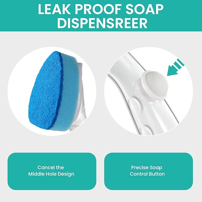 - Leak Proof: We use dishwand handle button to release the dish liquid soap in the grip. Push the button, it immerses soap through the sponge brush head rather than just squirt through the holes on the sponge. The system allows for precise soap dispensing