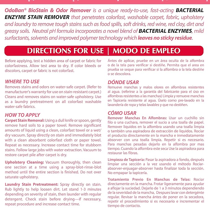 OdoBan Professional Cleaning and Odor Control Solutions, Ready-to-Use Biostain and Odor Remover, Made in the USA, 32 oz Spray Bottle and 1 Gallon