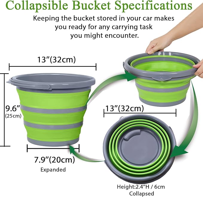 - 【Bucket - Multipurpose】Great for car wash, fishing buckets, camping gear, dog water bowl, beach pails, tools bucket, wash basin, camp tub, drink cooler,hiking, picnics, boating, outdoor survival,gardening,traveling,backpacking,washing dishes for picnic or beach toys, all around cleaning and carrying