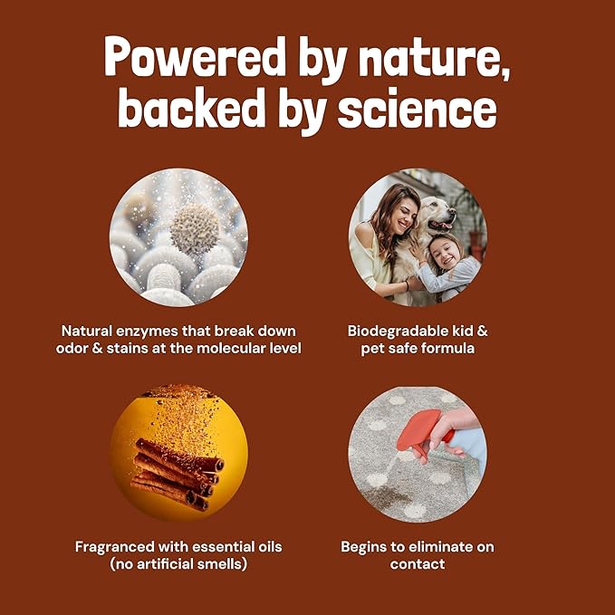- Made in the USA Quality: Trust in our premium pet stain remover made right here in the USA. This pet spray with a fall spice fragrance aligns with your values while turning your home into a pet-friendly haven without the strong, unpleasant scents
