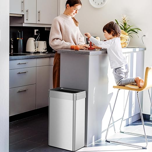 - QUICK & EASY DISPOSAL – Open Top design is perfect for busy homes, restaurants, restrooms, offices, lobbies, stores – quick & easy trash disposal.