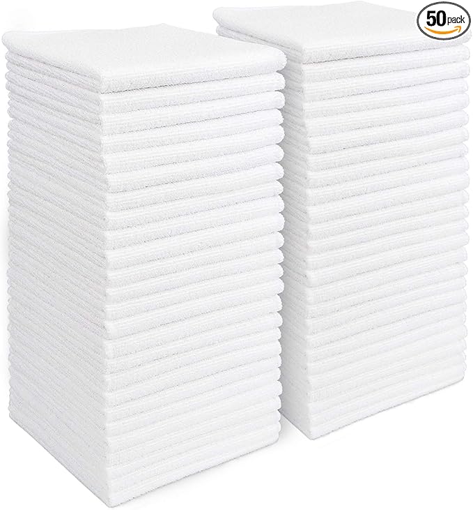 AIDEA Microfiber Cleaning Cloth White 50PK, Microfiber Towels for Cars, Lint Free Rags, Kitchen Towels Dusting Cloth, Bar Rags for Cleaning, Wash Cloth, Dish Cloths White, 11.5"x 11.5"