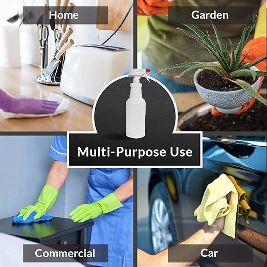 - CHEMICAL RESISTANT - Our multi purpose spray bottles have an excellent chemical compatibility. Use them for cleaning solutions, hair spray water bottle, plant misting, succulent, herbs, ironing, laundry, car detailing, janitorial. Make your own diy cleaners or just use with water to cool yourself; They are bleach, vinegar and rubbing alcohol safe (please read the product description below for more information on chemical usage)