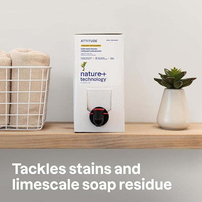 ATTITUDE Bathroom Cleaner Spray Refill, EWG Verified, Plant-Based & Vegan, Safe for Bathroom Surfaces, Tiles, Tubs, Shower Walls, and Grout, Citrus Zest Scent, 67.6 Fl Oz