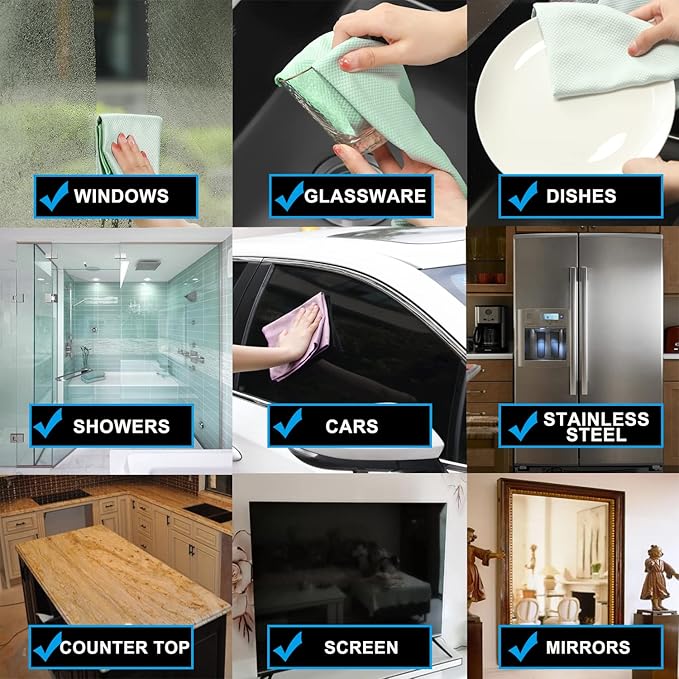 - Streak-free lint-free:Best Glass window mirror cleaning cloth for cleaning & polishing drying glass windows mirrors car windshield dishes wine glassware bath shower door and stainless steel,eyeglass lens,Computer. Unique fish scale wave can catch dust dirt easily remove smudges water spots fingerprints fast. Lintfree rag glass polishing cloths.