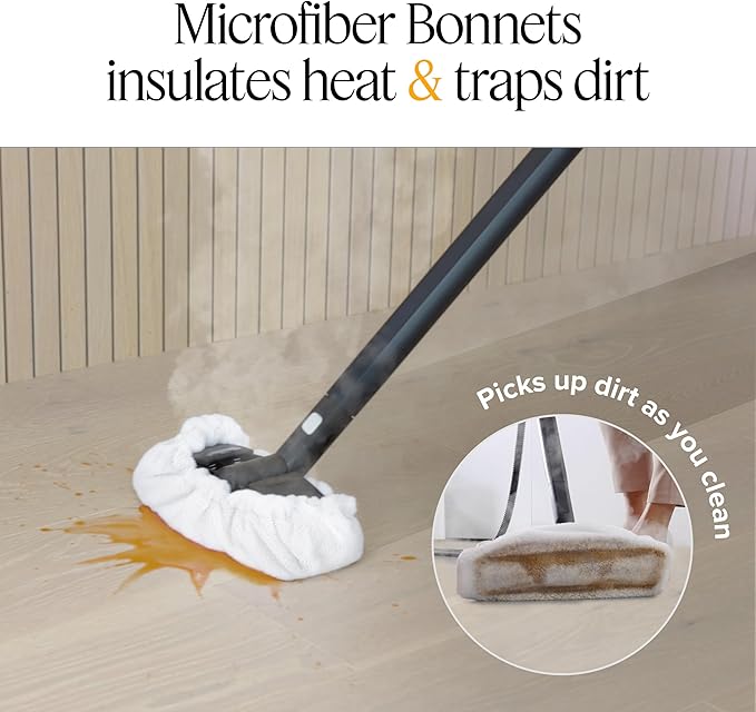 - Large Microfiber Bonnets: These bonnets are designed for use with the rectangular tool, effectively picking up dirt and debris as you clean. They also help insulate steam, resulting in higher steam temperatures for superior disinfection.