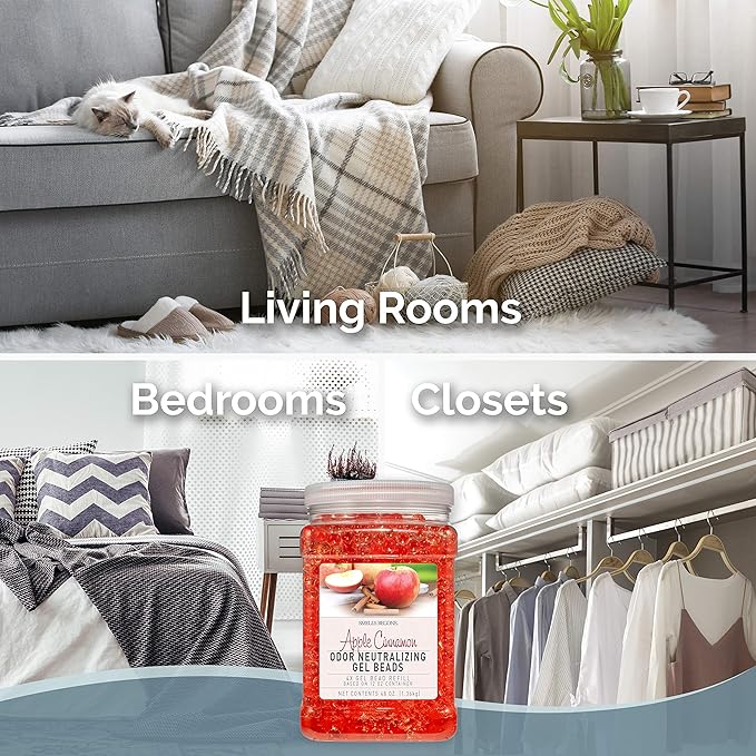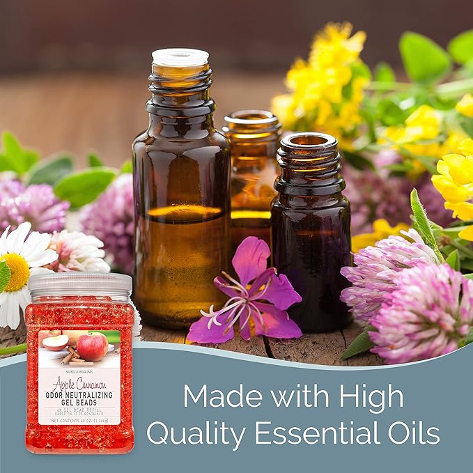 SMELLS BEGONE 48 oz Odor Eliminator Gel Bead Refill - Eliminates Odors from Bathrooms, Cars, Boats, RVs & Pet Areas - Air Freshener - Made with Essential Oils - Apple Cinnamon Scent