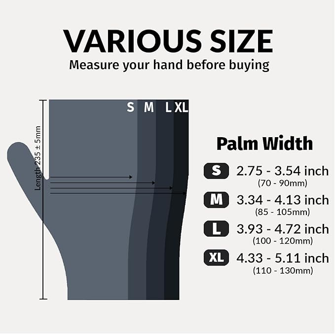 - ✅ CERTIFIED QUALITY : Meets and exceeds ASTM D6319 for quality and performance. For extra durability, These premium disposable gloves have beaded cuffs, feature smooth external finish, and are ambidextrous.
