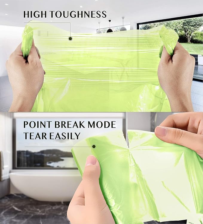 - Multipurpose Trash Bags - The compostable bags is clear green, which helps us identify the content of the garbage, so as to better sort the garbage. It is suitable for offices, kitchens, bathrooms, bedrooms, living rooms, baby diapers and garbage recycling.