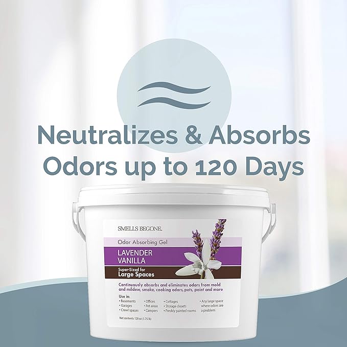 SMELLS BEGONE 1-Gallon Odor Absorber Gel - Air Freshener & Odor Eliminator for Homes, Garages & Commercial Buildings - Industrial Size - Lavender Vanilla Scent