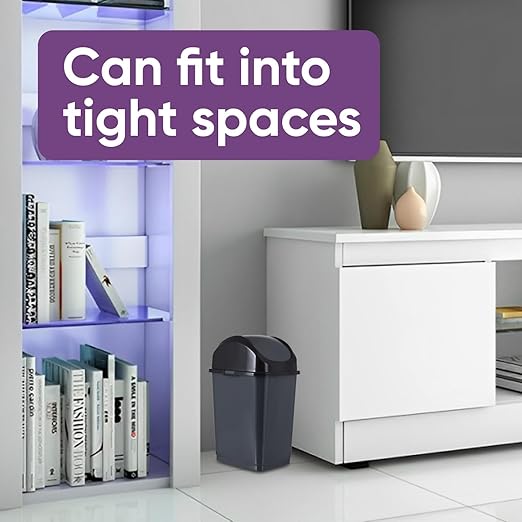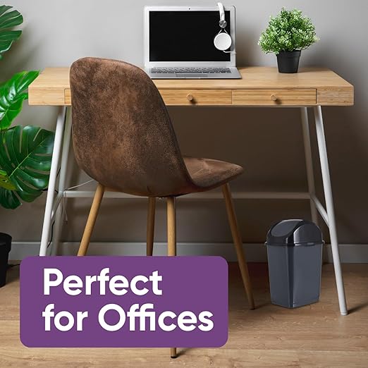 Superio Small 2.5 Gallon Plastic Trash Can with Swing Top Lid, Compact, Slim Waste Bin for Under Desk, Office, Bedroom, Bathroom, Dorm Room, 10 Qt. Portable Garbage Can (Dark Gray, 2