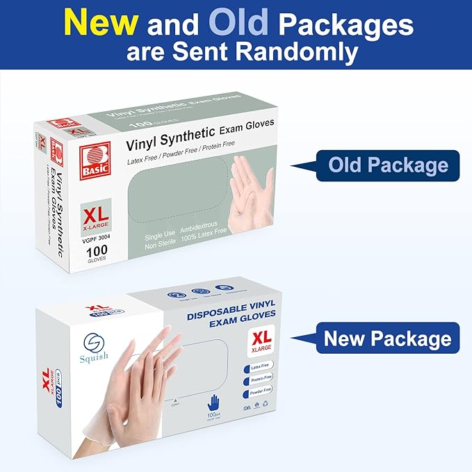 squish Disposable Gloves,Clear Vinyl Gloves Latex Free Powder-Free Glove Cleaning Health Gloves for Kitchen Cooking Cleaning Food Handling, 100PCS/Box, X-Large