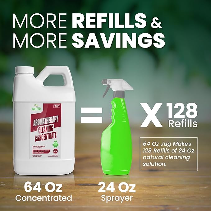 - Includes One 64 oz Concentrated Cleaner: Each bottle of Naeterra Aromatherapy Cleaning Concentrate makes up to 24 gallons of powerful, multi-surface cleaner. Formulated with plant-based surfactants and pure essential oils including Clove, Cinnamon, Lemon, Eucalyptus, Rosemary, and Peppermint.