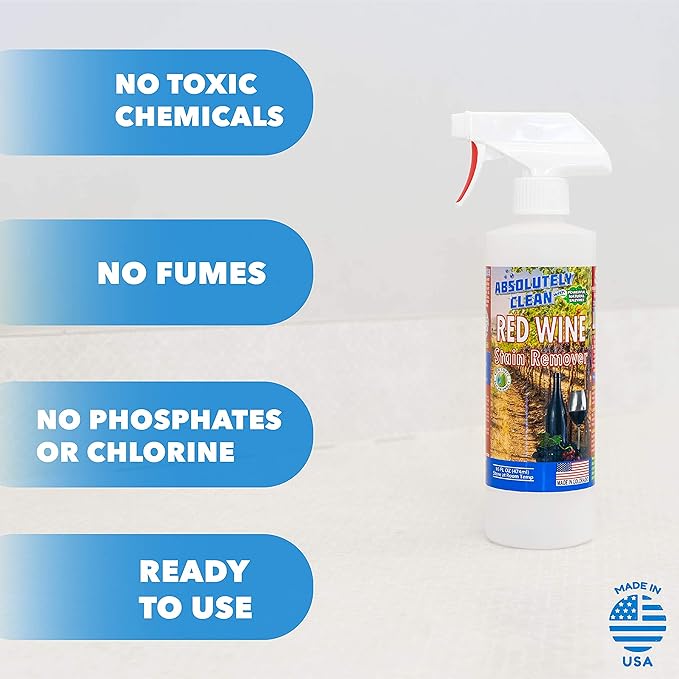 Amazing Red Wine Stain Remover – Natural Enzymes Eliminate Wine Stains Fast - Cleans Carpet, Upholstery, Clothing, Table Cloth & More - USA Made (16oz 2 Pack)