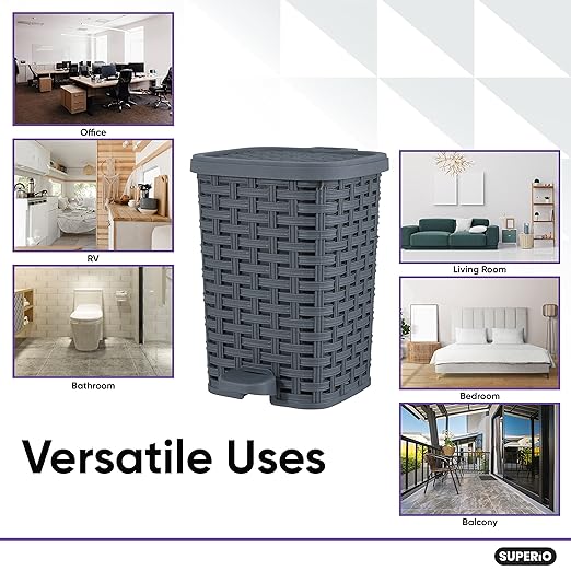 - Strong pedal - With a smooth, robust step, the Superio wicker step-on trash can is the perfect addition to any room. It offers hands-free disposal without sacrificing the volume and quality of your trash disposal. The strong pedal is engineered for an easy step and keeps the lid closed after use.