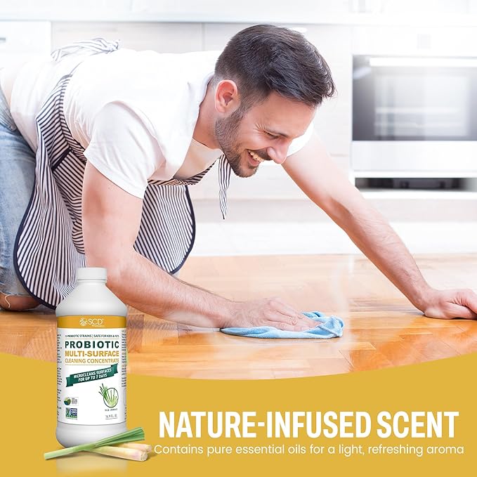 - Lemongrass Multi-Purpose Cleaner – SCD Probiotics patented technology harnesses the power of nature to fight grease & grime throughout your home. A simple yet powerful blend of active probiotics + enzymes that safely scrub your home clean.