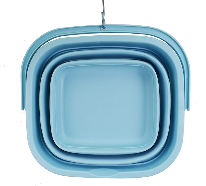 - Space saving with Expanded size: 13.6 x 12.7 x 8.4(h) inches and its height just 2.1 inches after folds. Save over 70% space when storage. Capacity: 10L / 2.6 gallon