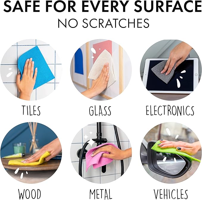 - π§Ή πππ¦π¬ ππππππ§ππ©π πππππ‘ππ‘π- With SUPERSCANDI Swedish dish clothes. Our dishwashing cloths have the functionality of a cellulose sponge acting as high absorbent towels with a durability of up to 25 rolls of paper towels. More versatile than a microfiber cleaning cloth, they are perfect for wiping surfaces, as dish clothes for washing dishes and mopping up spills as well as using for the bathroom, pets, car, garden and office.