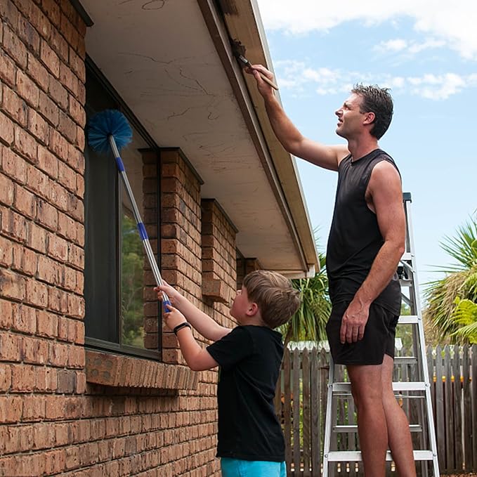 - 【Muti-application】Our cobweb remover is perfect for cleaning tall, hard to reach spots inside and outside: high ceilings, tight corners, walls, beams, shelves, light fixtures, window screens, and more!