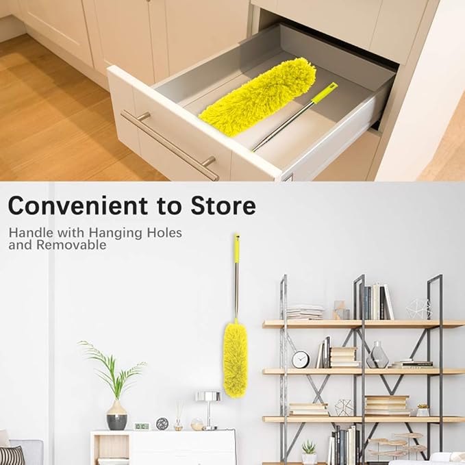 - Washable & Detachable: Just slide the duster head off the telescopic wand, hand wash with warm or low heat water, rotate the pole let the microfiber be fluffy; place in ventilated place to dry