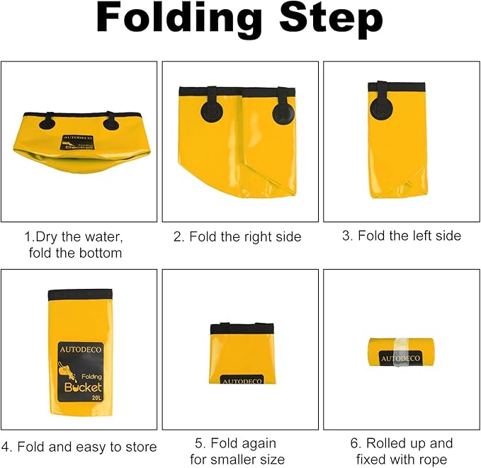 - Multi-purpose Fold Bucket: This AUTODECO Collapsible bucket is ideal for camping, fishing, traveling, boating, hiking, gardening, picnic, outdoor activities, daily use and car washing. It can be used as fish bucket, ice bucket, fruits and veggies basket, travel basin, coaches bucket for baseball, etc