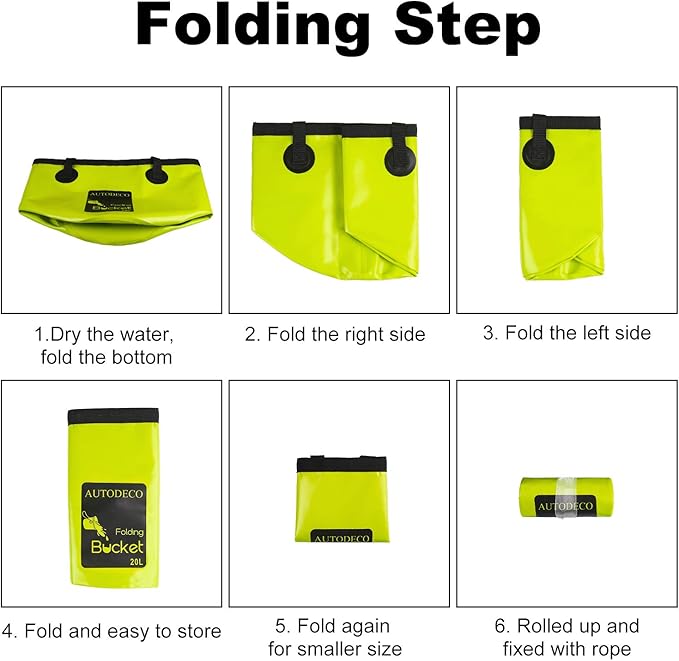 - Multi-purpose Fold Bucket: This AUTODECO Collapsible bucket is ideal for camping, fishing, traveling, boating, hiking, gardening, picnic, outdoor activities, daily use and car washing. It can be used as fish bucket, ice bucket, fruits and veggies basket, travel basin, coaches bucket for baseball, etc