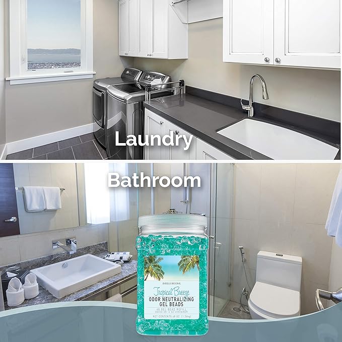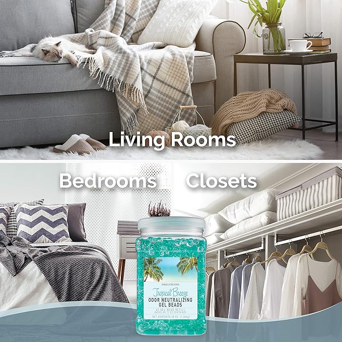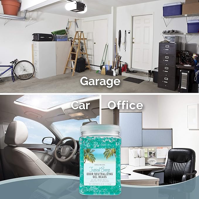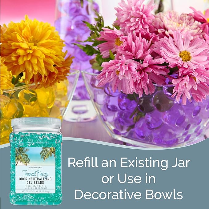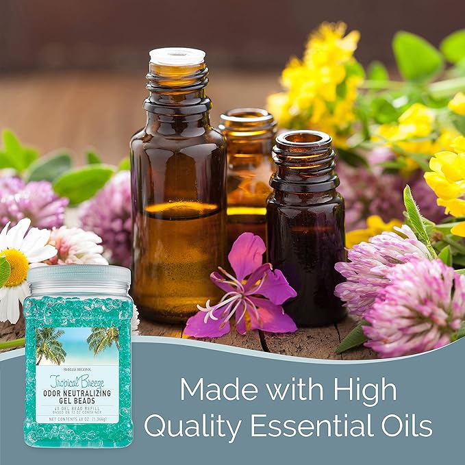 SMELLS BEGONE 48 oz Odor Eliminator Gel Bead Refill - Eliminates Odors in Bathrooms, Cars, Boats, RVs & Pet Areas - Air Freshener - Made with Essential Oils - Tropical Breeze Scent