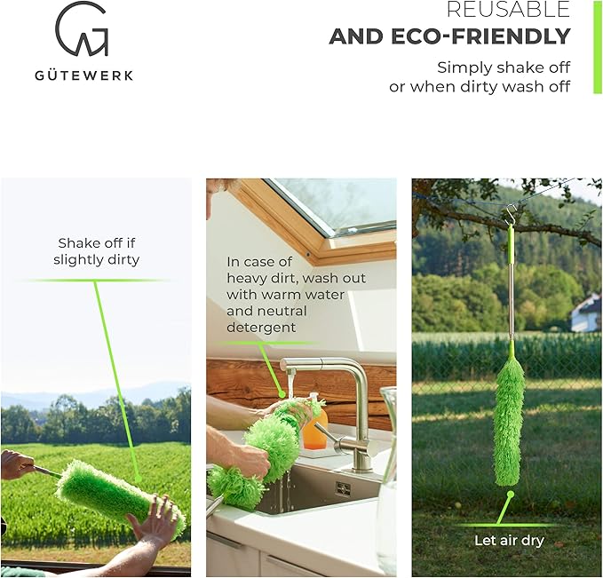 Extendable Microfiber Feather Duster, Feather Dusters for Cleaning, Ceiling Fan Dust and Cobweb Cleaner - Electrostatic Bendable Head - up to 100 Inch