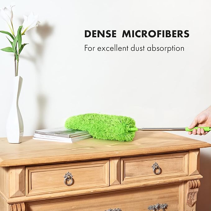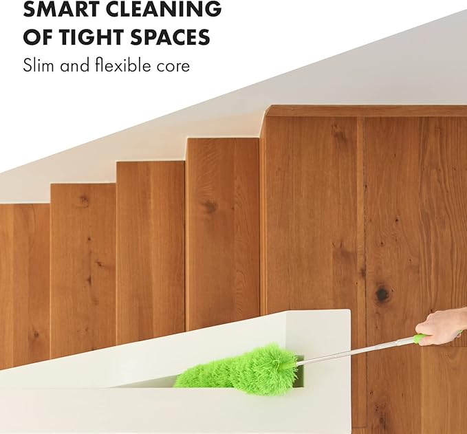 Extendable Microfiber Feather Duster, Feather Dusters for Cleaning, Ceiling Fan Dust and Cobweb Cleaner - Electrostatic Bendable Head - Set of 2 Replacement Heads
