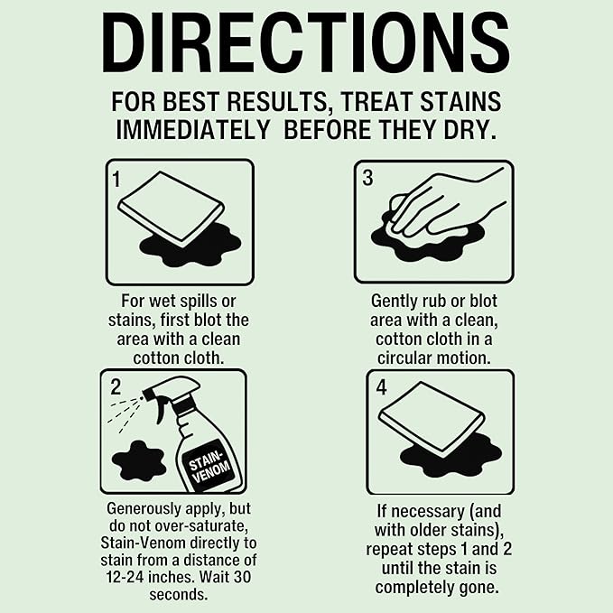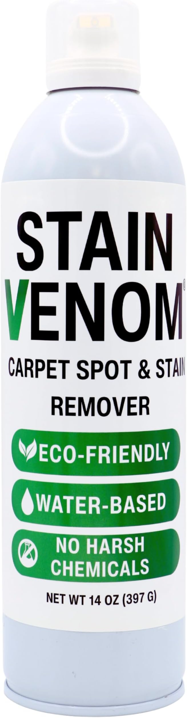 - Stain Venom Carpet and Rug Spot Remover's fast penetrating formula effectively removes tough stains that include (but not limited to) fresh pet stains, red wine, blood, lipstick, motor oil, coffee, and even mustard. formulated with the latest state-of-the-art technology