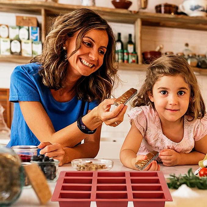 JOERSH 2pcs Granola Bar Mold Rectangle Silicone Candy Bar Mold Deep for Baking Chocolate Energy Bars/Protein/Nutrition/Cereal Bars/Cheesecake/12-Cavity Butter Mould