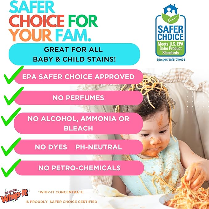 Whip-It Stain Remover and Concentrate Kit, 2-32oz Concentrates & 1-32 OZ Pro Spray Stain Remover, Makes 64 Bottles, Removes Coffee, Wine, Baby Stains, Pet Stains, Plant Based, Enzyme Cleaner, 500 Uses