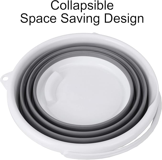 - Effortless Storage Meets Everyday Utility: Collapses down to just 2 inches in height. This 10-liter bucket tucks easily into closets, car trunks, or RV cabinets. W expanded, it’s sturdy, spacious, and ready to go. For those who need serious function without sacrificing space