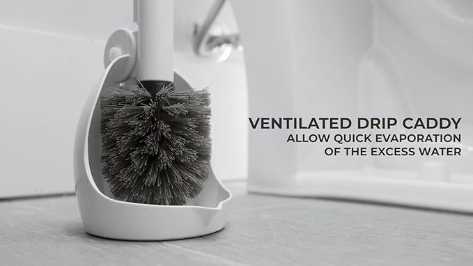 - DRIP-FREE TOILET BRUSH SYSTEM – STAY CLEAN & DRY - This isn’t a regular toilet brush. ELYPRO’s patented no-drip design uses a sliding holder caddy that seals the brush after use. A simple button press lifts the holder to catch dripping water, keeping your floors clean and hygienic.