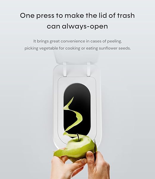 - 【Overload sealing & Anti-accidental touching】Adaptive identification system, auto sealing, even in trash overloading situations. Bathroom trash can will automatically sense the location of the excess trash that exceeds the trash can and adapt to the height of trash and extend the trash bag to seal. Trash can with lid also can work, in case of obstacles. Automatically identify obstacles above the lid and intelligently postpone the continuous lid opening.