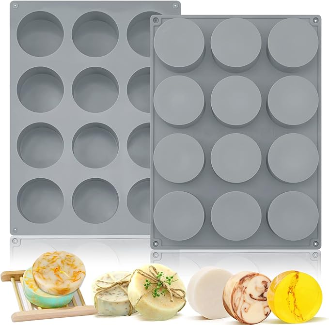 Moukiween Round Soap Silicone Molds, 2.1 inch Small Round Mold for Handmade Soap Making Shower Steamer, Bath Bombs, Chocolate, Candles, 2 PCS