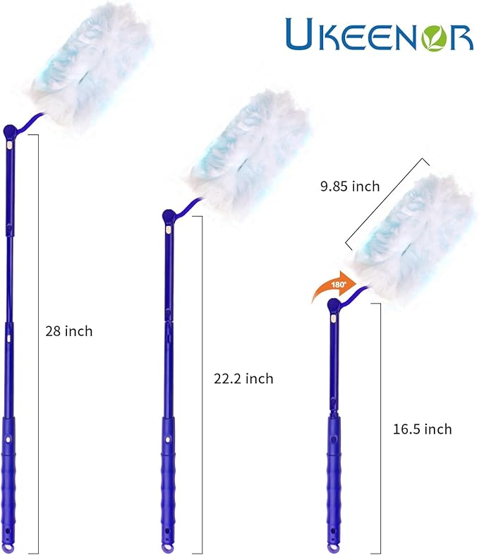 180° Dusters Multi Surface Duster Refills Kit Extender Handle (1 Long Handle to + 1 Short Handle + 15 Duster Refill)