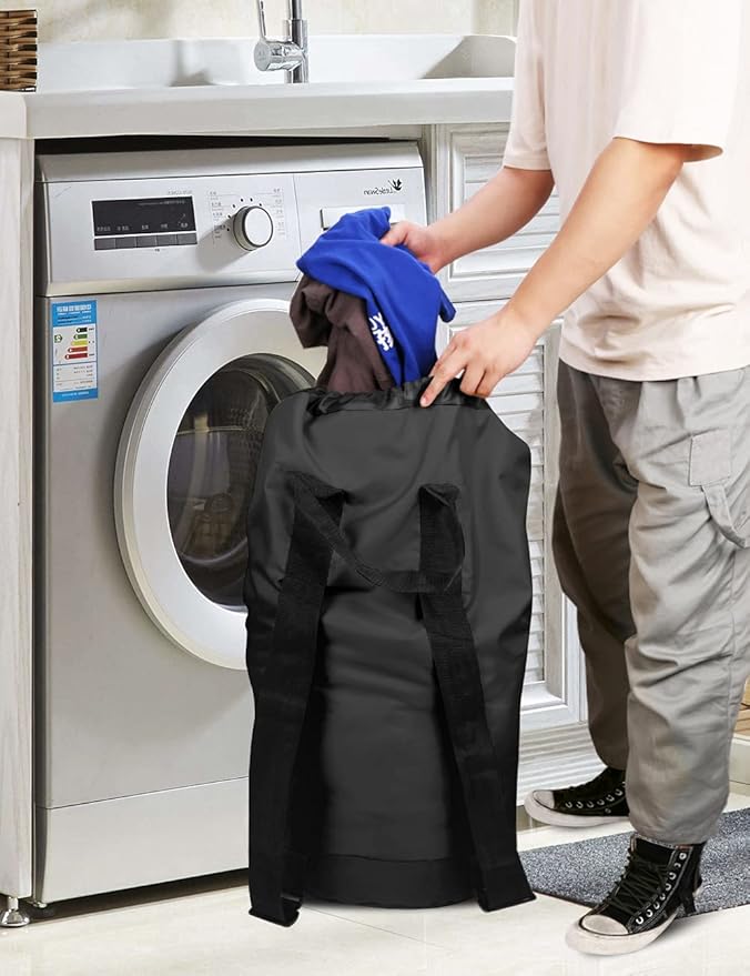 - USE AS HANGING HAMPER - Hang this laundry backpack on the wall or door as hanging laundry hamper with the reinforced hanging loop on the bag to collect dirty laundry. Suitable for college, camping and home.