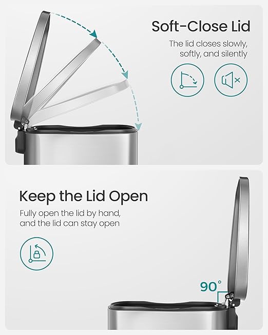 - [Soft Closure] The lid of the garbage can closes slowly, softly, and silently without making a loud clang