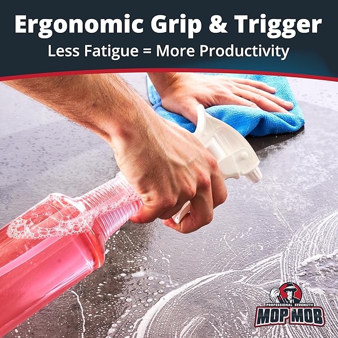 - COMFORTABLE DESIGN MAXIMIZES PRODUCTIVITY. Our comfy triggers and ergonomic bottles are designed so that even kids can use them. Two fingers rest on the trigger and the others hold the bottle, limiting hand fatigue to keep work flowing.