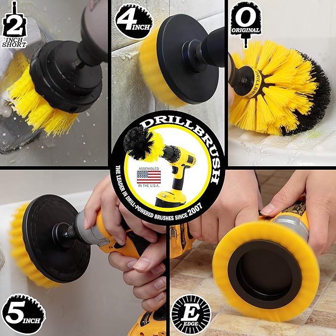 - Drillbrush has assembled the next generation of Ultimate household cleaning tools. Featuring two brand new drill scrub brushes, the edge and cone brush allowing you to get into tight corners and crevices with ease. Suitable for Bathrooms, Toilets, Sinks, Showers, Grout lines, Glass Shower Doors, and Tile. Clean, Scrub, and detail with this 21-piece cleaning brushes set