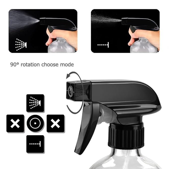 - Package Included: 2*16 Ounce glass spray bottles with 2 black big trigger sprayers, 2*4 Ounce glass spray bottles with 2 black trigger sprayers, 4*2 Ounce glass spray bottles with 4 small black trigger sprayers.