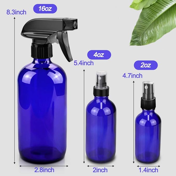 - Package Included: 2*16 Ounce glass spray bottles with 2 black big trigger sprayers, 2*4 Ounce glass spray bottles with 2 black trigger sprayers, 4*2 Ounce glass spray bottles with 4 small black trigger sprayers.