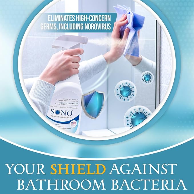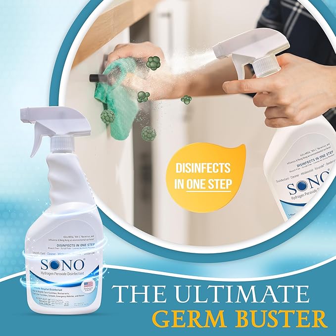 - SPRING FRESH FORMULA: SONO Healthcare's Hydrogen Peroxide formula offers effective disinfection on various surfaces. Ideal for kitchens, bathrooms, and throughout your home, this multipurpose cleaner eliminates microorganisms, promoting a hygienic space. Infuse your space with the refreshing essence of spring using SONO's disinfectant spray.