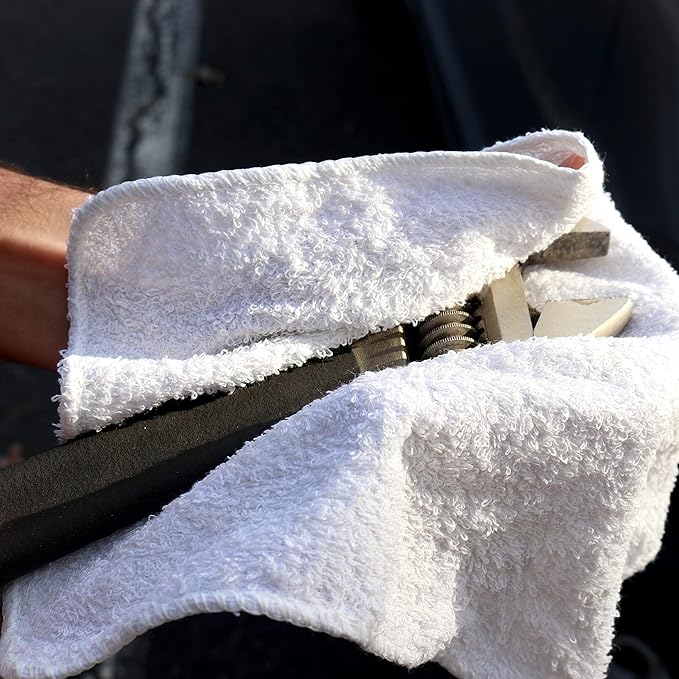 - DURABLE CLEANING SUPPLIES: These white terry cloth rags are discarded as irregulars during the washcloth production process. Use them around the home to clean up spills, grease, grime, and oil. Remove dirt from tools, paint from brushes, and to detail cars. These bulk terry towel cleaning rags are hearty and will not let you down.