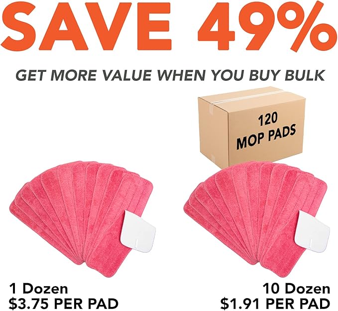 - ALL SIZE CLEANING SUPPLIES: Our commercial mop pad refills are designed to work with all-size velcro-backed flat mop frames, including compatible with Bona and Rubbermaid Mop Heads. Mop pads come in 13", 18" and 24" and are effective in cleaning any floor surface - vinyl, hardwood, laminate, and tile.